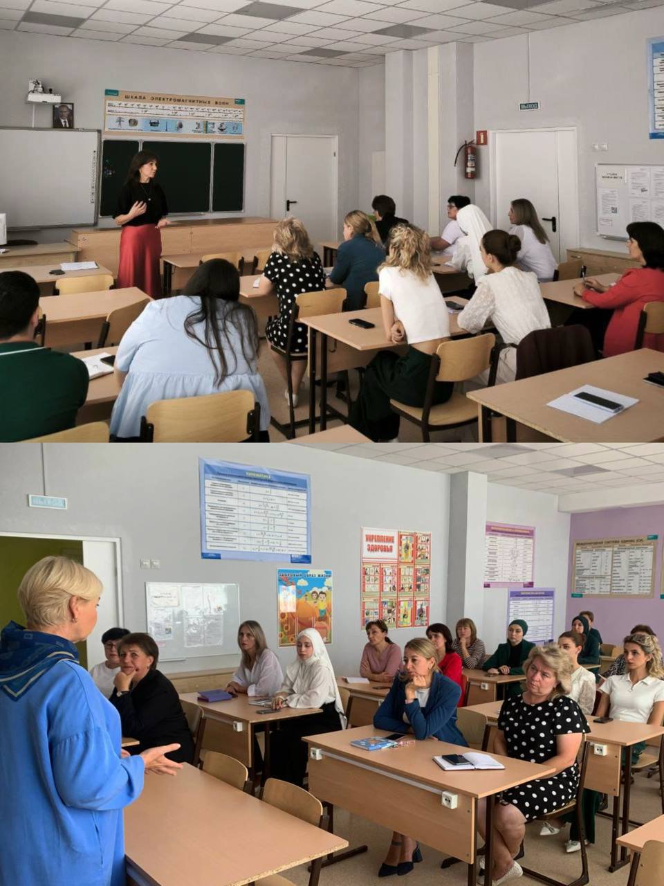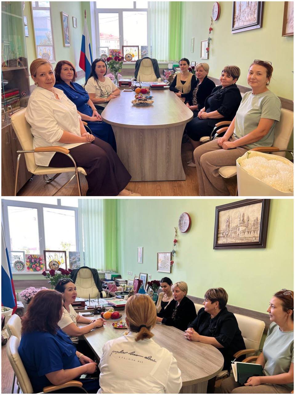 Представители Симферопольского научного центра РАО – старший научный сотрудник Ирина Владимировна Андрусёва и младший научный сотрудник Фериде Рустемовна Якубова – встретились с коллективом школы во главе с директором Гульнарой Наримановной Муртазаевой.