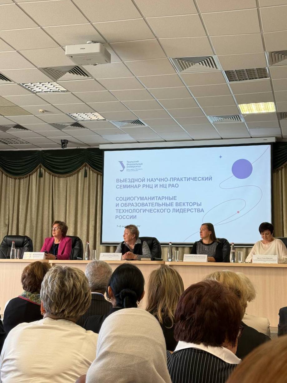 7-8 октября 2025 года на базе Уральского федерального университета в Екатеринбурге прошел выездной научно-практический семинар Российской академии образования «Социогуманитарные и образовательные векторы технологического лидерства России». На него съехались представители региональных научных центров со всей страны.