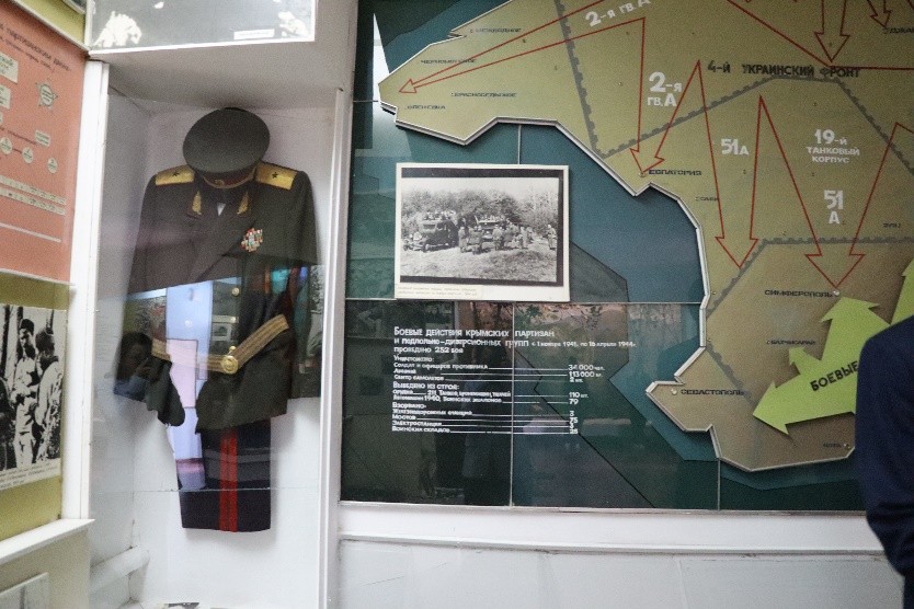 Музей был создан в 1967 году. С экспонатами помогали сами партизаны и их боевые друзья. Так в экспозицию попали, например, санитарная сумка и бинокль медсестры Ичкинского партизанского отряда Галины Леоновой, шинель и китель комиссара Ивана Бедина, вещмешок и плащ рядовой партизанки Ефросиньи Тищенко, генеральский мундир Михаила Лобов, возглавившего партизанское движением в Крыму после Алексея Мокроусова.